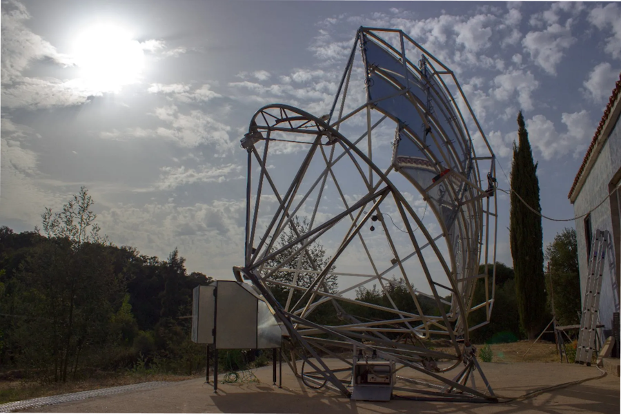 Designed as an „inflatable“ mirror, its smoothed, reflective surface effectively makes the focus of concentrated sunlight smaller and hotter. The mirror is able to generate temperatures of up to 1000 centigrade, offering the opportunity to use it in decentralized, autonomous projects (e.g. steel welding) and still use the sun as the only source of energy.